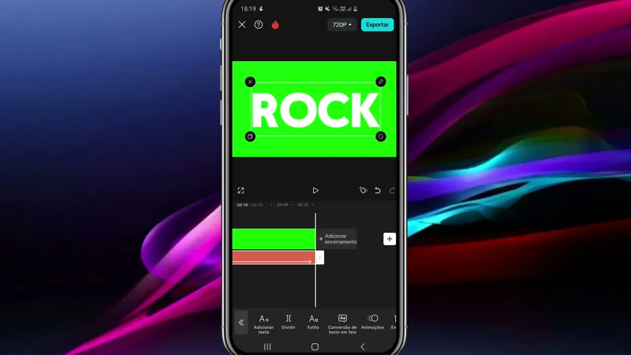 o efeito até o final e pronto olha só que bacana que fica bem legal né E aí eu vou voltar aqui na setinha vou clicar aqui em camada seleciono aqui a palavra E aí eu posso subir aqui ó você pode aumentar você pode colocar aqui onde você quiser olha só então é uma ideia aí diferente para você utilizar nos seus vídeos eu vou colocar na tela toda para você conseguir visualizar melhor Então olha só é uma ideia diferente que você pode usar aí a sua imaginação para criar os seus vídeos você pode utilizar outra palavra