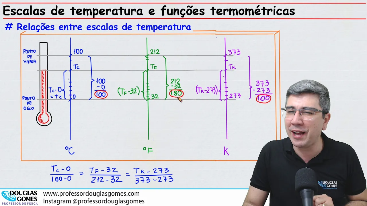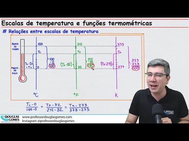 Olá querido Estudante eu sou professor Douglas Gomes e venho trazer física para você o tema de agora são as escalas de temperatura e as funções termométricas quer saber mais sobre a parte conceitual desse assunto tem os links dos vídeos aqui na descrição para você tem interesse nesse tema deixa já o seu joinha quer ver mais vídeos como esse se inscreve aqui no canal e Ative o sino das notificações para receber aviso quando tiver vídeo novo quero aprender física comigo no curso feito especialmente para você acesse meu site professor Douglas gomes.com agora vem comigo pra gente
