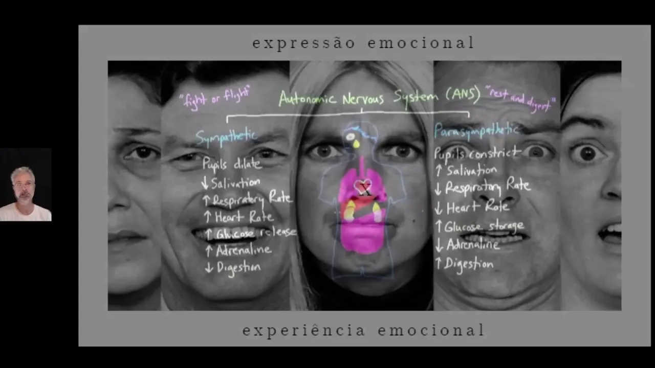 é de onde vem essa ligação intuitiva quando você sente medo do seu coração bate mais forte a sua boca seca há cinco Minutos de começar uma prova sua mão tá mais molhada sua boca tá mais seca sua cabeça tá mais agitada Você tá no estado de maior ansiedade mas em quieto então isso representa de alguma maneira uma ligação muito clara entre reações da experiência subjetiva emocional que a gente tem e o sistema autonómico e como o sistema autonómico representa a experiência subjetiva e se eu perguntar para vocês e o sistema autonómico o atividade do Sistema