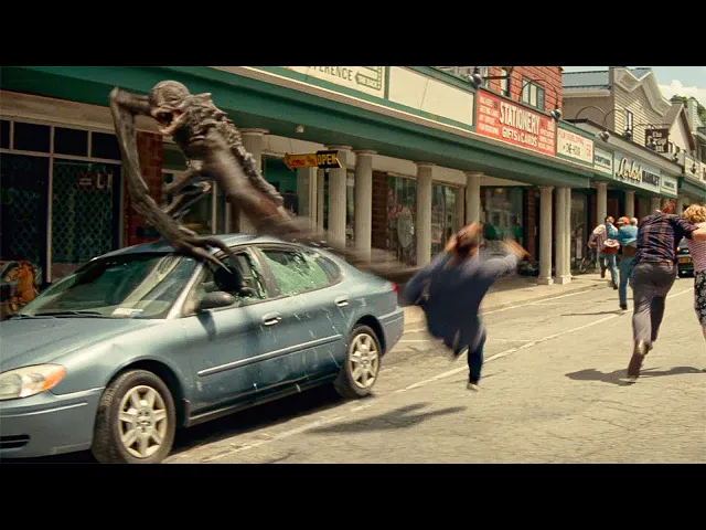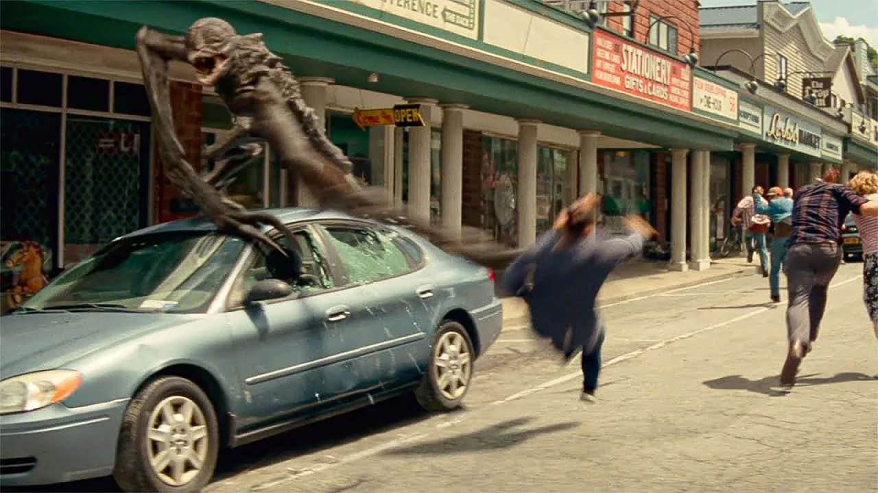 aproxima com o monstro em cima Evelyn coloca o carro em ré e acaba batendo hegan vê isso e quer resgatar sua família mas um monstro está chegando então Lee A arrasta para dentro de uma loja muitas pessoas estão se escondendo lá e Lee precisa silenciar um homem rezando parece que a criatura do lado de fora vai embora mas infelizmente o telefone de alguém toca e a besta entra pela janela para começar a matar pessoas Lee e Reagan fogem pelos fundos e o Monstro os persegue quando chegam à rua onde os outros estão se escondendo um