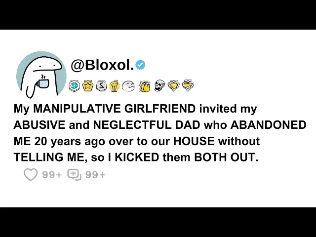 my manipulative girlfriend invited my abusive and neglectful dad who abandoned Emy 20 years ago over to our house without telling me so I kicked them both out my girlfriend and I have been together for a year and a half and when she first found out that none of my family have contact with me she freaked out she comes from a very big and close family so I can definitely understand why it must be confusing for her but what I could never understand are her desperate and never-ending attempts to get me back in touch with my