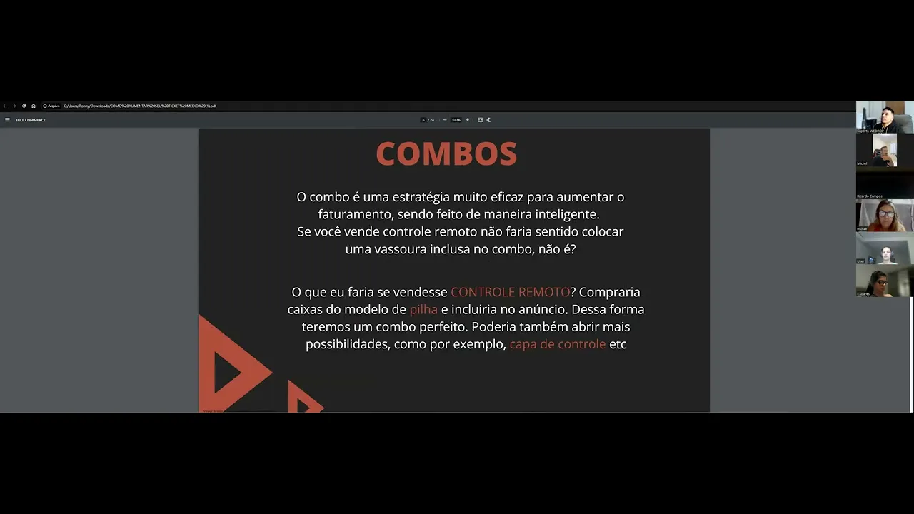 saber que já tá já tá rodando começou aí né boa então estratégia para aumentar o ticket médio esse PDF ele é até antigo só deu uma atualizada no nos números que mudaram um pouquinho mas ele é muito efetivo para poder explicar vocês pra gente meio que fazer um checklist hoje Né principais tópicos que a gente vai trabalhar hoje combo que no caso é a mesma coisa que kit leve mais por menos que a maioria não sei porque chame de leve mais Pag menos acabou ficando conhecido assim mas é leve mais por menos a estratégia dos