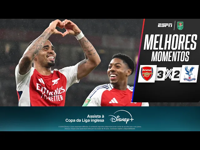 GABRIEL JESUS FAZ HAT-TRICK, e Arsenal elimina o Crystal Palace com virada na Copa da Liga Inglesa