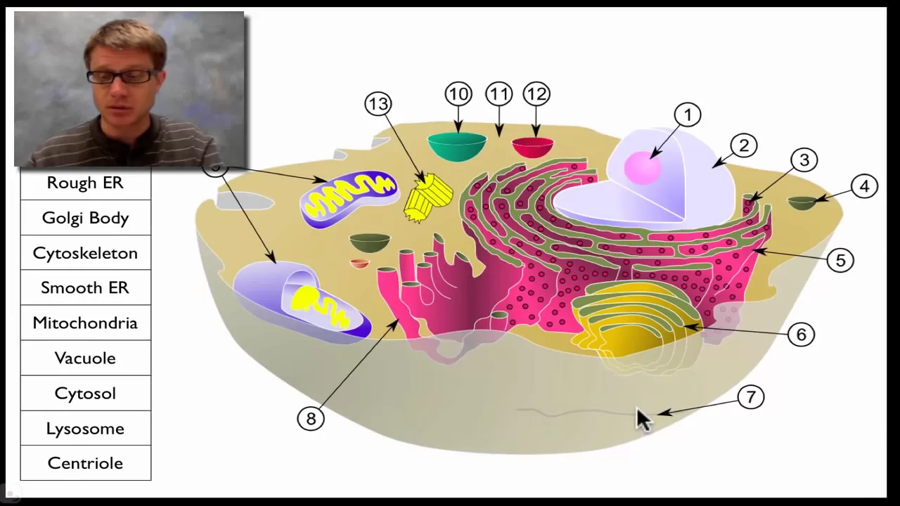 and so what I'm gonna do is go through it show you where they are talk about what they do and then you probably want to review at the end and go through all of them and see how much of the information that you actually picked up so let's start with number one and that's the nucleolus nucleolus is gonna be found within the nucleus and I used to be confused on how this actually works what they do is all the chromosomes that are within the nucleus what they do is they put all of their genes to
