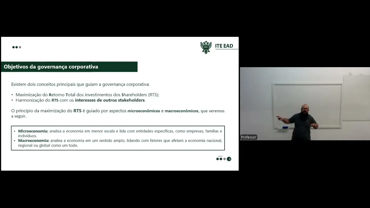 dois aspectos o micro e o macroeconômico tá aqui tem um lembrete aqui do que é o micro e o macroeconômico tá você dá um pausa aí dá uma relembrada e esses aspectos a gente vai começar a discutir a partir de agora tá e dentro dos aspectos microeconômicos a gente vai ter alguns subitens aqui que nós vamos tratar bom o primeiro deles é a lógica financeira de novo capitalismo né Então dentro aqui Da Lógica financeira existem alguns alguns pontos que valem a pena a gente lembrar né pô as empresas são constituídas para proporcionarem riquezas é isso