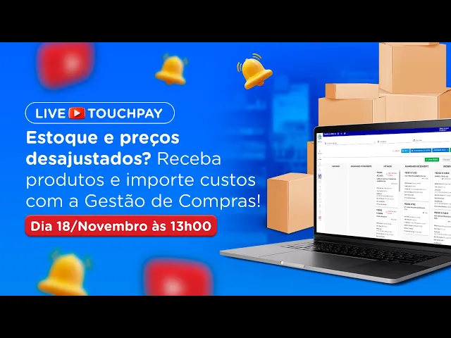 participaram aqui hoje. Espero vocês semana que vem, terça-feira, 1 hora da tarde, a gente vai estar aqui ao vivo de novo, falando aí de mais uma funcionalidade aqui do Touch Pay. Então, recapitulando, né, a gente fez aí primeiro a gente falou do dos planogramas, que é o que dita o que vai ser vendido na loja. Então, primeiro A gente definiu quais produtos vai vender, agora a gente tá recebendo esses produtos. Então, já falei: "Ó, quero vender Coca-Cola, Fanta e esse chocolate." Agora eu tô recebendo a Coca-Cola, a Fanta e o chocolate. E na terça que