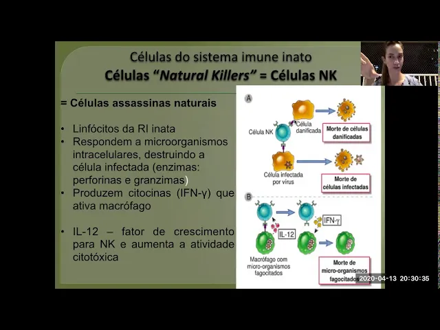 tá certo eu posso passar para falar da nk tá certo pode passar nós vamos não entre em pânico que vai dar tudo certo viu gente ela que eu falo para vocês a imunologia ela é uma historinha por isso que vocês não podem perder nenhuma tá vamos lá para as famosas células nk a tela dentro de casa vocês já ouviram falar aí né deve ter escutado selando exterminadora célula assassinas né mas é uma célula nk gente natural killer é uma senha em inglês é uma célula da resposta imune inata como ela resposta imune nada ela vai