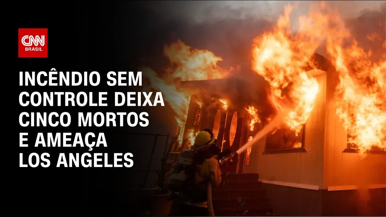a gente vai agora ao noticiário Internacional e claro os destaques o destaque são os incêndios sem controle com fogo destruindo tudo por onde passa em Los Angeles que fica na Califórnia na Califórnia uma das maiores cidades dos Estados Unidos subiu para cinco o número de mortos nessa tragédia mais de 155.000 pessoas receberam ordem de sair de casa da cidade ir o Mais longe possível desse fogo que se alastra rapidamente tudo tá acontecendo rápido demais os ventos estão fortíssimos e estão empurrando o fogo para todas as direções não dá para imaginar para que direção vai o