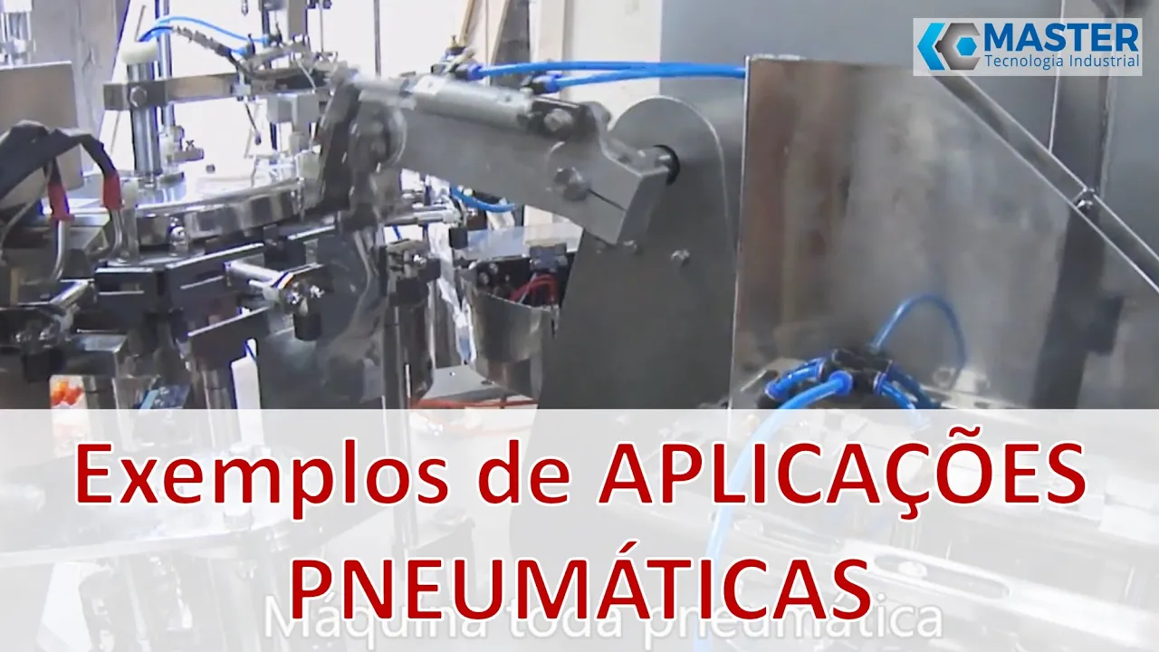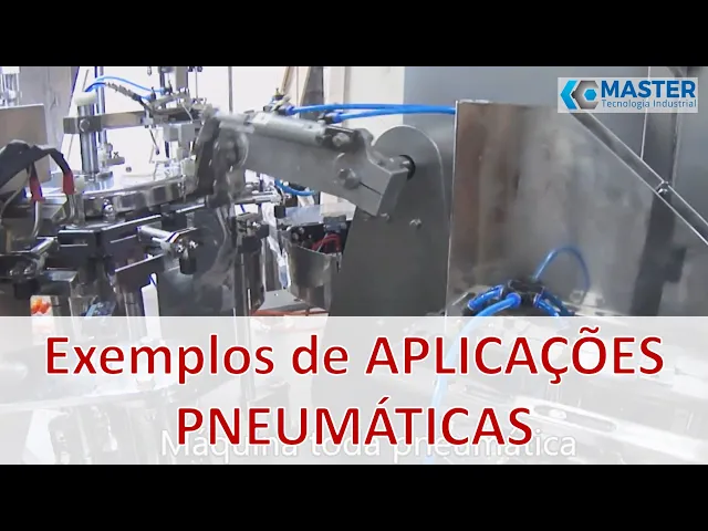 olá pessoal seja muito bem vindo mais um vídeo da master de tecnologia industrial nesse vídeo vai falar sobre exemplos de aplicações de automação pneumática então uma automação pneumática você usa o ar comprimido para realizar o movimento e com isso automatizar o processo em comparação com a automação hidráulica o mesmo elétrica a pena mágica relativamente mais simples e barata então a idéia desse vídeo a mostrar alguns exemplos de aplicações pneumáticas e automação industrial aqui vocês podem ver uma lista das mais comuns aplicações pneumáticas mas são muitas e realmente o céu é o limite a gente começa