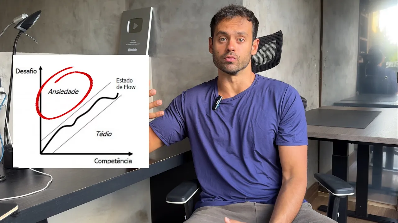 nesse vídeo eu vou te falar como entrar em estado de trabalho profundo algo cada vez mais raro e valorizado hoje por todo tipo de empresa trabalho relacionamentos pessoais e num mundo que a gente é bombardeado de informações sensoriais todo o tempo a gente não consegue nem parar para respirar muito menos para criar alguma coisa e entrar em estado de Flow e como fazer isso num mundo assim hoje vamos nessa eu quero que você entenda esse gráfico que eu tô colocando aqui na tela quando algo é muito desafiador uma tarefa muito de difícil você vai sentir