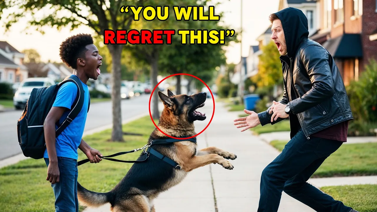 What happens when a petty Thief targets the wrong black boy believing that he is an easy victim watch as a determined boy and his loyal dog refused to back down in the face of danger and take matters into their own hands from a tense confrontation in the neighborhood to a gripping Manhunt where Justice is delivered watch as courage and resilience triumph over intimidation the neighborhood was quiet the late Afternoon sun casting Long Shadows across the sidewalk walk Jamal walked steadily one hand gripping the leash of his German Shepherd Rocky The Familiar weight of his backpack