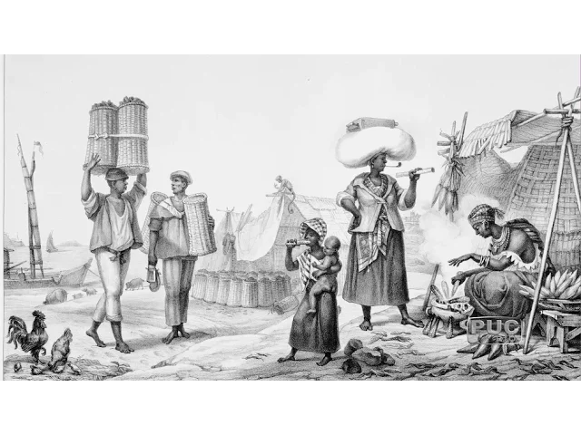 flash as tribos enfim pintor oficial da corte de Dom Pedro I debr teve um olhar atento e cuidadoso quando viajou pelo Brasil e deparou-se com a situação dos escravos negros tudo assenta pois nesse país no Escravo negro na roça ele rega seu suor à plantações do Agricultor na cidade o comerciante fala o carregar pesados fardos se pertence ao capitalista é como um operário ou na qualidade de moço de recados que aumenta a renda do Senhor mas sempre mediocremente alimentado e maltratado contrai às vezes os vícios dos nossos domésticos expondo-se a castigos públicos revoltantes para um
