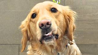gonna unclip him and now I'm going to pick him up I'm going to put on the happy hoodie good boy look at that very attractive underbite come here it's okay good boy and I'm going to dry him with the little dog High Velocity dryer will you let me wash I mean dry your head please I need to dry your head I'm gonna dry it with this one okay [Music] [Applause] okay so when I tried to move him he did growl at me for the first time so there's the first sign of him not liking grooming