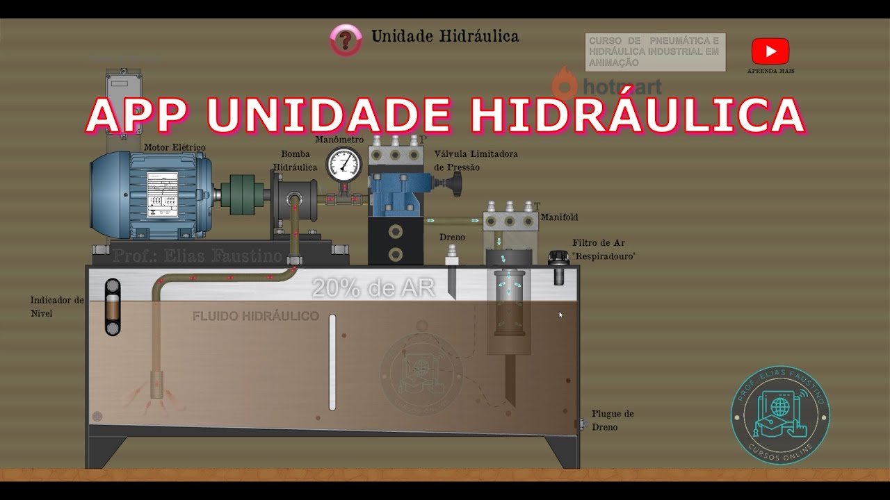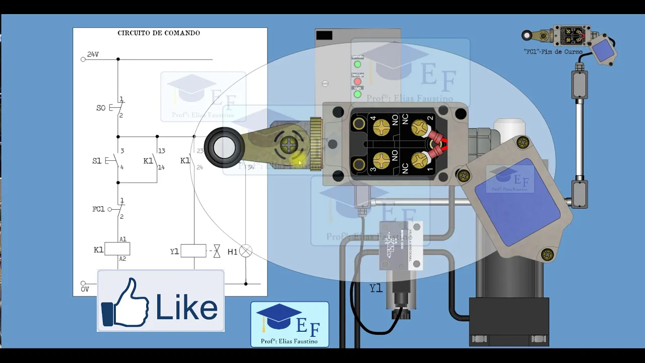e aí o olá pessoal professor elias mais um vídeo aí para o canal neste vídeo vou falar sobre um circuito eletro-hidráulico vou falar que ela do circuito de comando hoje eu vou falar aqui do circuito eletro-hidráulico circuito físico né você cuide físico aqui na verdade isso aqui também é um circuito eletro-hidráulico porque tem uma solenoide aqui é vamos aí não vou cobrir isso daqui eu quero nesse momento atenção só aqui ou não nas operações para a gente entender quais são as operações que se clique vai fazer antes de falar de diagrama aqui temos o botão
