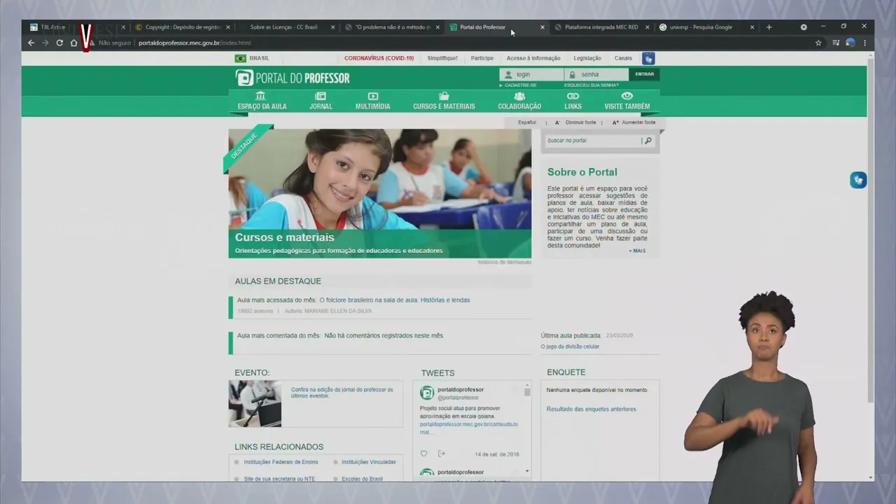 gov. br e neste Portal nós temos a aqui o espaço da aula com algumas sugestões de aula criadas por docentes eh e que deixaram aí disponíveis as suas sugestões para eh através de uma aprendizagem colaborativa Ah uma troca de experiências entre os docentes mas nós temos também a neste site alguns recursos educacionais coleções de recursos ah TV Escola ao vivo então por exemplo podemos acessar os recursos educacionais e podemos usar por exemplo um recurso de música vamos imaginar que eu estou trabalhando a na Educação Básica com a a Biologia a identidade dos seres vivos e eu quero falar um pouquinho sobre a questão no escuro e vendo então eu posso clicar aqui e eu faço o download desta desta música e usando Então esse recurso educativo durante as minhas aulas depois vocês podem explorar nós temos vários recursos educacionais coleção de recursos sendo que nesta vocês também podem buscar recursos educacionais a partir de um dado tema que vocês estejam trabalhando como por exemplo vou colocar aqui né o tema alfabetização nós temos aqui vários tipos de recursos então sobre a questão da alfabetização E aí vocês podem acessar e conhecer os recursos para planejar a sua aula com uso da tecnologia digital e de recursos disponíveis no portal do professor uma outra plataforma bastante interessante para conhecermos é a plataforma MEC Ou seja a plataforma MEC de recursos digitais e Aqui Nós Temos vários tipos de recursos digitais Nós também podemos buscar os recursos que por meio de uma palavra-chave e podemos aí conhecer os diversos recursos que estão aqui disponíveis então eu vou colocar aqui eu também gostaria de conhecer alguns recursos a respeito de alfabetização e clico na lupa e vou conhecer aqui os recursos de alfabetização então por exemplo ele traz um jogo Educacional para o ensino fundamental Ah qual o seu pedido que também é um jogo então aqui ele traz eh textos ah websites externos vídeos ã vários tipos de jogos então para acessar o recurso basta clicar e eu já terei então acesso Ahã ao recurso nesse caso o meu recurso é um jogo envolve o conteúdo curricular língua portuguesa podendo ser usado aí no ensino fundamental um no ensino fundamental dois e é interessante novamente a gente frisar olha aqui conhecemos o tipo de licença essa também é uma licença Creative commons Ok Isso é muito importante para não usarmos cursos educacionais com licenças fechadas e vamos conhecer também o site da Univesp sim a Univesp também possui um repositório de rea O que são ré mesmo são recursos educacionais abertos então no site univesp.