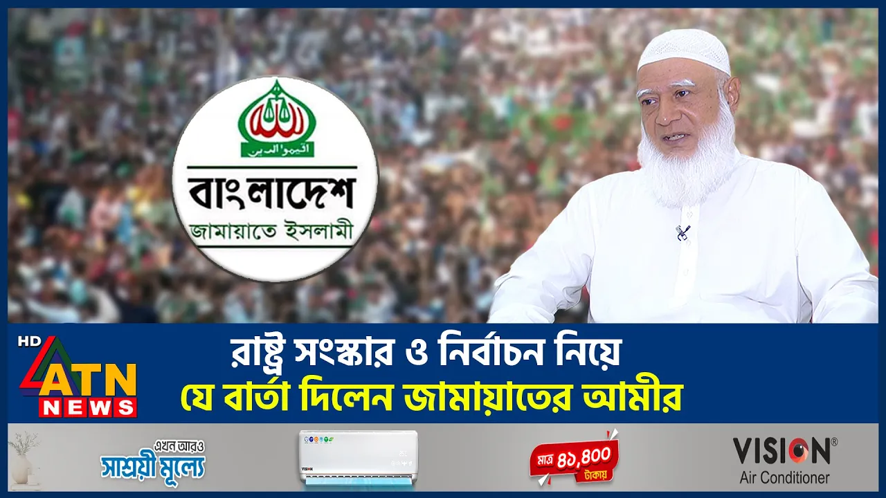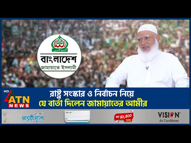 তড়িঘড়ি নয় বরং রাষ্ট্রের নির্দিষ্ট কিছু সংস্কার করেই নির্বাচনে যেতে হবে বলে মন্তব্য করেছেন জামাতে ইসলামীর আমির ডাক্তার শফিকুর রহমান এটিএন নিউজের সাথে বিশেষ সাক্ষাৎকারে তিনি আওয়ামী লীগ ও বিএনপির সাথে দীর্ঘদিনের রাজনৈতিক সম্পর্কের বর্তমান অবস্থা তুলে ধরেন পাশাপাশি মুক্তিযুদ্ধে জামাতের অবস্থানও ব্যাখ্যা করেন দলটির আমির আজন নাজি আফরিন ছাত্রজনতার গণঅভ্যুত্থানের মধ্য দিয়ে গঠিত হয় অন্তর্বর্তী সরকার নিরাপত্তা এই সরকারের সাথে দেশের রাজনৈতিক দলগুলো আলোচনা করে পরবর্তী নির্বাচনের পরিবেশ তৈরি এবং রাষ্ট্র সংস্কারে উদ্যোগ নেয়া হয়েছে আমি আমাদের সহকর্মীদেরকে অন্তর্বতী সরকারের কাছে রাজনৈতিক দল হিসেবে জামাতে ইসলামী প্রত্যাশার কথা এটিএন নিউজের বিশেষ সাক্ষাৎকারে জানিয়েছেন দলটির আমি ডাক্তার শফিকুর রহমান এটা
