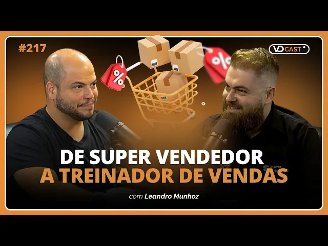 escola que vai pôr um e-book vai pôr uma aula gratuita um vídeo e faz a nutrição para deixar ele mais pronto pra compra hoje acho que a ferramenta mais moderna para fazer isso é o [Música] podcast eu sou o Vittor Damasio e esse é o vdc o podcast para você que vive ou Quer viver dos seus negócios digitais e no episódio de hoje do vdc você vai conhecer o Leandro Munhóz ele é fundador do super vendedores e host do podcast papo de vendedor É isso mesmo Leandro É isso aí se apresenta então pra galera do