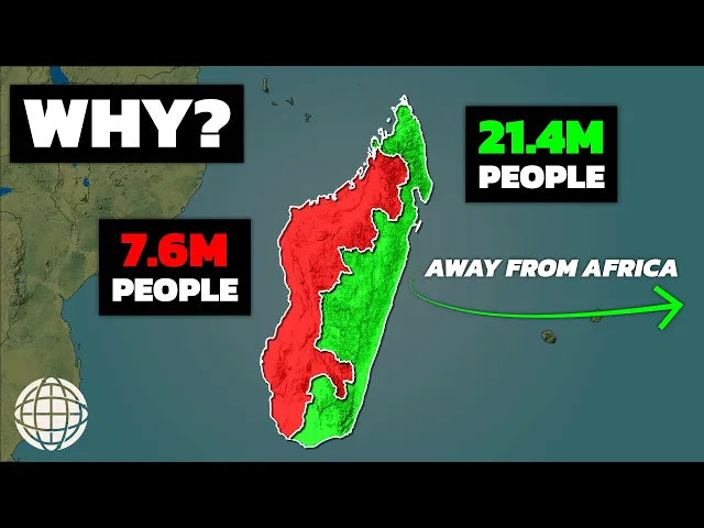 Madagascar the fourth largest island in the world is home to about 29 million people but of those 29 million people about 74% or 21.4 million live on the Eastern side of the island away from Mainland Africa which is weird because typically populations Orient themselves towards their nearest neighbors due to the need for cultural exchanges and trade relations so why is the Western half of Madagascar so empty if it's so close to other countries in Africa we're heading back to Africa after quite a while I think the last video I did of the continent was about