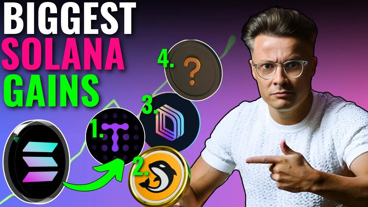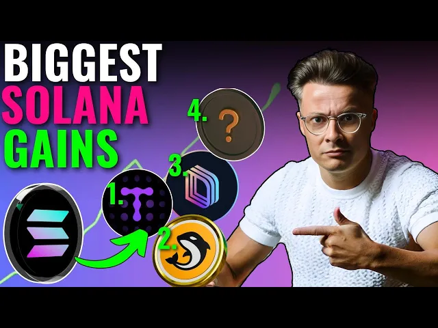 altcoins over the past 24 hours have been bleeding towards the downside but one altcoin has stood up to this test better than any other that altcoin is salana however I know what you're thinking salana is already at a hundred billion market cap maybe it can only do a four or 5x from here and you're probably right but the good news is if you can identify top quality projects built on salana with smaller market caps then you could still benefit from the growth and strength of this ecosystem therefore in this video I'm going to tell you about four projects built on salana with much smaller market caps I think are going to see significant growth in the coming weeks and months as this bull market starts to kick on again so do me a favor hit that like button into it now guys before we dive into those altcoins let's just jump across and look at Bitcoin right now what the f is going on I hear you cry just yesterday it was up near 108,000 and today we find ourselves dipping back down to retest 100,000 this has caused the alt coins to look a little bit shaky but don't worry think of every dip in a bullmark Market as a blessing it might not feel like a blessing when you're tearing your hair out and having a little cry into your cereal at breakfast looking at your portfolio down a couple of hundred bucks or a couple of thousand doar or whatever it is today but trust me on this buying dips in ball markets is really how you can make your money but where to buy the dip I told you in a video yesterday that maybe aping into coins again and again that you are already whole that are already significantly up is probably not a good idea and I'll just recap to you why this is not a good idea right for example if you bought down here you are already up like 9x and if you go and continue to buy up here instead of being up 9x you now drag your average price paid up the chart which means if sui then takes a dip into like this Zone then you are now back into a loss moment rather than being in profit and being healthy therefore in my opinion you don't want to be buying the coins that you already hold significant profits in especially ones that have barely seen any dip like SOI that's down like 7% instead you should be going after coins that seen significant dips that are still within the ecosystems and things that you're interested in now why is salana looking stronger than most well because of what it's done over the past year rather than what it's done in the last day or two now I appreciate many of you who are watching this video are kind of newer in crypto and probably don't know what's happened over the past year but many others will know that it's been a pretty painful time for most altcoins that have just been bleeding aggressively against Bitcoin because Bitcoin in March earlier this year took a stalling point for eight months went sideways and everything bled towards the downside with the exception pretty much of salana that really outperformed Bitcoin during this time it's formed this nice cup pattern it's broken out it's come back to retest and has now got one of the most stable bases for seeing some significant growth across crypto now we've already talked about larger market caps not necessarily giving us the returns that we want particularly as some of us we're buying into salana back at $8 so we're already significantly up in salana in fact I don't really own any salana anymore in fact I sold all my salana to buy SOI back in September turned out to be a pretty good move so far but I know that salana is is still the ecosystem to watch but I'm not happy with four or 5x games okay I'm not really looking to get into salana for four or 5x games instead I want to benefit from the ecosystem Now quickly to address those people who are like yeah but salana can do a 10x or a 20x let me just tell you right now okay sana's Market capab is100 billion ethereum's market cap is like $480 billion which is a 4. 8x on salana and whilst you might be sat there telling me that ethereum is so much more expensive and slower than salana you probably would be right because that isn't what's behind ethereum massive valuation this is defil l. com ethereum tvl total value locked ethereum sits at $86 billion total value locked okay all of these projects people staking people lending all these different derivatives are all on ethereum right now which is what gives ethereum its Hefty price tag and in contrast to the $86 billion locked in ethereum salana has only $ 11 billion which is pretty much 1/8 of ethereum so you would maybe argue salana is perhaps boardline overvalued compared to ethereum right now so yeah don't get too excited about it but the good news this is going to continue to grow okay salana has a lot of growth left in the tank for sure and there is a lot of money swelling around within this salana ecosystem to go and bleed into the alt coins built on salana therefore if you can go and find good quality alt coins on salana then you probably know it we're onto a winner but this is the main reason I'm looking at salana altcoins right now compared to others a lot of you are newer to crypto and maybe you're feeling a little bit fragile right now that's probably because you're buying into altcoins that don't have stable bases you're probably buying into the altcoins everyone's talking about and they're already quite big and quite kind of unsteady therefore you want to look at ones that are built on an ecosystem that is looking strong against Bitcoin okay salana versus Bitcoin right here you can see is running into this area of key support every time salana is in here pretty much it goes up against Bitcoin therefore we've got a pretty strong idea that if Bitcoin has a significant dip again that salana probably won't dip as hard as bit coin that's key okay that's very key because if salana doesn't dip that heavily then the alt coins on salana won't dip that heavily either but they still possess the opportunity to go much hig