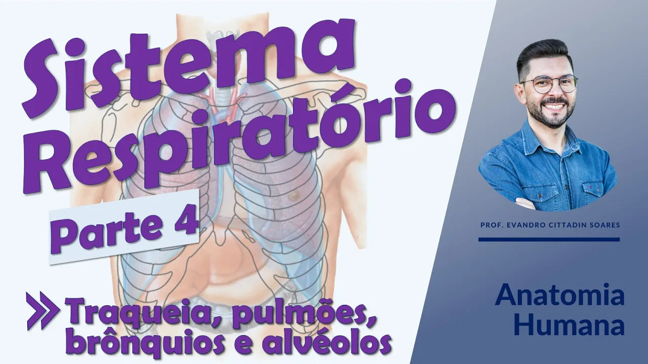 Olá pessoal Essa é a quarta videoaula referente ao sistema respiratório e nela nós falaremos da traqueia dos pulmões dos brônquios e dos alvelos Espero que aproveitem a [Música] aula em relação à traqueia bom abaixo né da cartilagem cricoide que é essa cartilagem aqui eu tenho um outro órgão né que nós vamos chamar de traqueia essa traqueia ela é constituída por cartilagens traqueais então vejam aqui eu tenho e eh aqui eu tenho semi Anéis ó eles não são anéis completos vejam Isso aqui é uma vista anterior da traqueia a gente tá vendo essa traqueia deixa eu