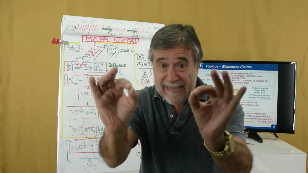 essa a segunda parte que nós vamos fazer a partir de agora é claro que sem a primeira você não faz a segunda né alguns dizem que essa é a parte mais importante do método realmente que é a formulação dos elementos e que nós vamos caminhar paraos elementos bit tridimensionais só que nós vamos usar alguns artifícios positivos né para tornar o assunto menos sofrido você utilizou a mola para entender o procedimento de montagem Porque é simples trabalhar com a mola mas o conceito é absolutamente Universal o conceito de rigidez está presente em cada ponto do seu