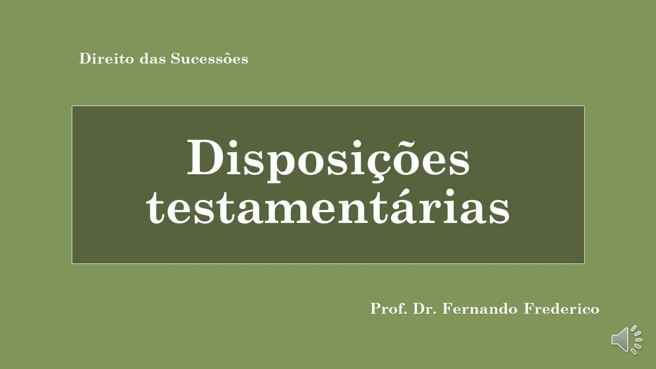 e em continuação ao nosso curso de Direito das sucessões aula de hoje se refere as disposições testamentárias vamos analisar os artigos do Código Civil que tratam desse assunto Ok vamos lá e diz o artigo 1897 do Código Civil que a nomeação de herdeiro ou legatário pode fazer se pura e simplesmente sob condição para certo fim ou modo ou por certo motivo então vejam que o testador ele tem liberdade para estabelecer as cláusulas em seu Testamento e esse artigo está deixando isso bastante claro né quando se fala em nomeação de herdeiro ou legatário né o o