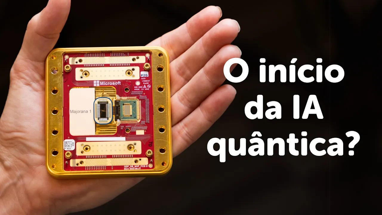 a Microsoft lançou um chip quântico que é inacreditável e que pode abrir espaço para nascer uma inteligência artificial quântica nos próximos anos o que é mais inacreditável que eles Inventaram um novo estado de matéria que permite colocar dentro desse chip 1 milhão de cubits para tu ter ideia hoje o chip quântico mais poderoso do mundo tem mais ou menos 1000 kbits ter 1 milhão de kbits resolve e dentro desse chip desse tamanho que cabe na palma da mão resolve problemas que hoje são impossíveis como por exemplo a cura de doenças como por exemplo H explorar