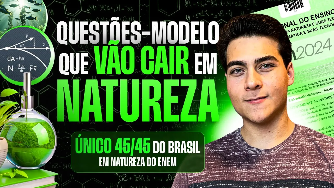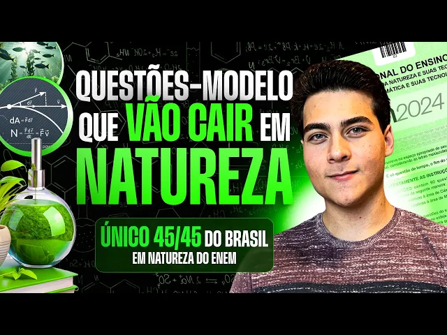 a prova do Enem e com essa prova em todos os anos eu passo em medicina na USP o curso mais concorrido do Brasil e nesse vídeo assim como eu já fiz pro vídeo de questões modelo de humanas e linguagens que eu acertei várias questões que caíram na prova do primeiro dia do Enem eu fiz também um vídeo de questões modelo de matemática hoje eu quero mostrar as questões modelo de natureza natureza é uma área extremamente conteudista tem muita matéria de Física química biologia realmente tem que estudar muita coisa Você precisa aprender uma grande variedade de