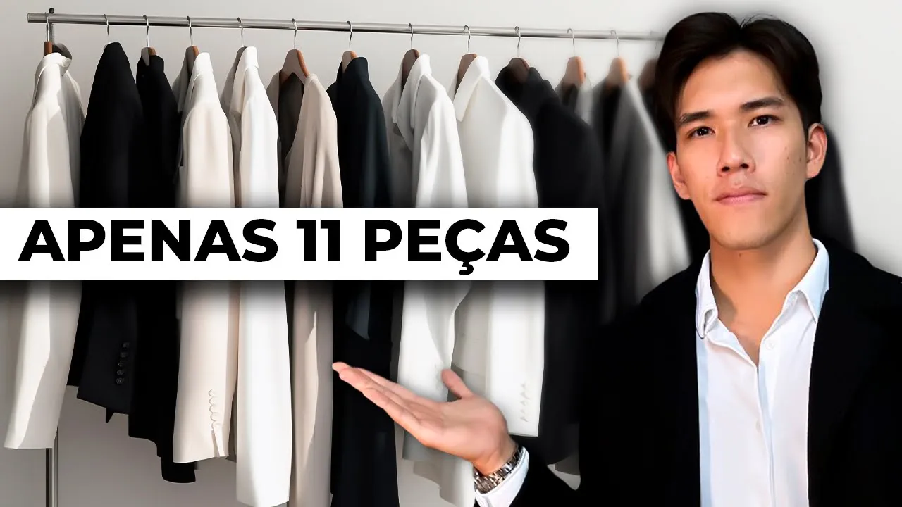 a quantidade de peças que você precisa para fazer um guarda-roupa perfeito um guarda-roupa funcional ou seja um armário cápsula aquele que vai funcionar para você pra maior parte das ocasiões com o mínimo de roupa possível depende bastante da sua idade do seu estilo Mas no geral Você vai precisar de só 11 peças eu vou aqui falar 11 peças que todas combinam entre si e você vai ajustar ela pro seu estilo de vida por exemplo se você é um adolescente e usa mais tênis do que bota ou sapato talvez você possa trocar um sapato por um