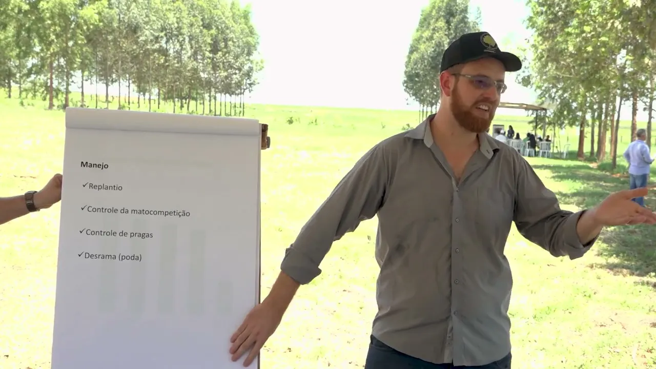 [Música] [Música] Olá bom dia a todos eu vou falar um pouco sobre o componente Florestal falar sobre a implantação o manejo e o desempenho dos pontos que foram testados aqui na URT e passar algumas condições aí alguns aspectos que exigem atenção para tá melhorando o desempenho desse componente Florestal dentro do sistema de sistema de integração primeiramente aí na fase de planejamento é essencial a gente avaliar a área onde vai ser feita em plantação esse mapa em específica dessa dessa área Aqui nós temos uma uma imagem estratégica aqui a luz pausar que nos mostra o a