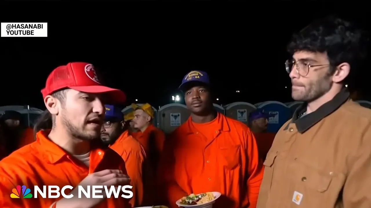 MEANWHILE, AS WE TALK ABOUT ALL MEANWHILE, AS WE TALK ABOUT ALL THESE MULTIMILLION DOLLAR HOMES, THESE MULTIMILLION DOLLAR HOMES, THERE ARE SOME VERY IMPORTANT THERE ARE SOME VERY IMPORTANT PEOPLE ON THE FIRE LINES WHO ARE PEOPLE ON THE FIRE LINES WHO ARE FINALLY GETTING TO SHARE THEIR FINALLY GETTING TO SHARE THEIR VOICES AS WELL, IN PART THANKS VOICES AS WELL, IN PART THANKS TO A PRETTY BIG TWITCH STREAMER, TO A PRETTY BIG TWITCH STREAMER, HASAN PIKER. YOU MIGHT HAVE HASAN PIKER. YOU MIGHT HAVE ALREADY SEEN SHOTS OF INMATES ALREADY SEEN SHOTS OF INMATES OUT THERE ON THE FIRE LINES.