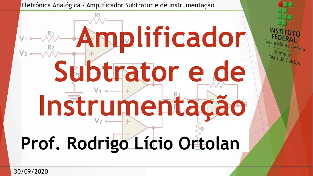 Oi bom dia boa tarde boa noite aqui quem fala o professor Rodrigo e hoje a gente vai dar continuidade então com as nossas vídeo aulas de eletrônica analógica falando sobre amplificadores operacionais Hoje a gente vai estudar o amplificador subtrator e o amplificador de instrumentação assim como uma característica desses amplificadores que é o cmrr Segue para aula então um a amplificador subtrator amplificador de instrumentação vamos Verificar como que esse circuito funcionam primeiramente eu coloquei aqui o amplificador inversor que a gente já estudou em aulas anteriores e o amplificador não inversor Onde estão aqui amplificador inversor e