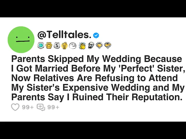 parents skipped my wedding because I got married before my perfect sister now relatives are refusing to attend my sister's expensive wedding and my parents say I ruin their reputation I 28f got married 8 months ago after being in a relationship for 4 years everyone attended the wedding with the exception of my parents and my sister 26f I wasn't surprised about my sister not attending since she and I never really got along well anyway I had extended an invitation to her just out of politeness and common courtesy but my parents being a no show was a