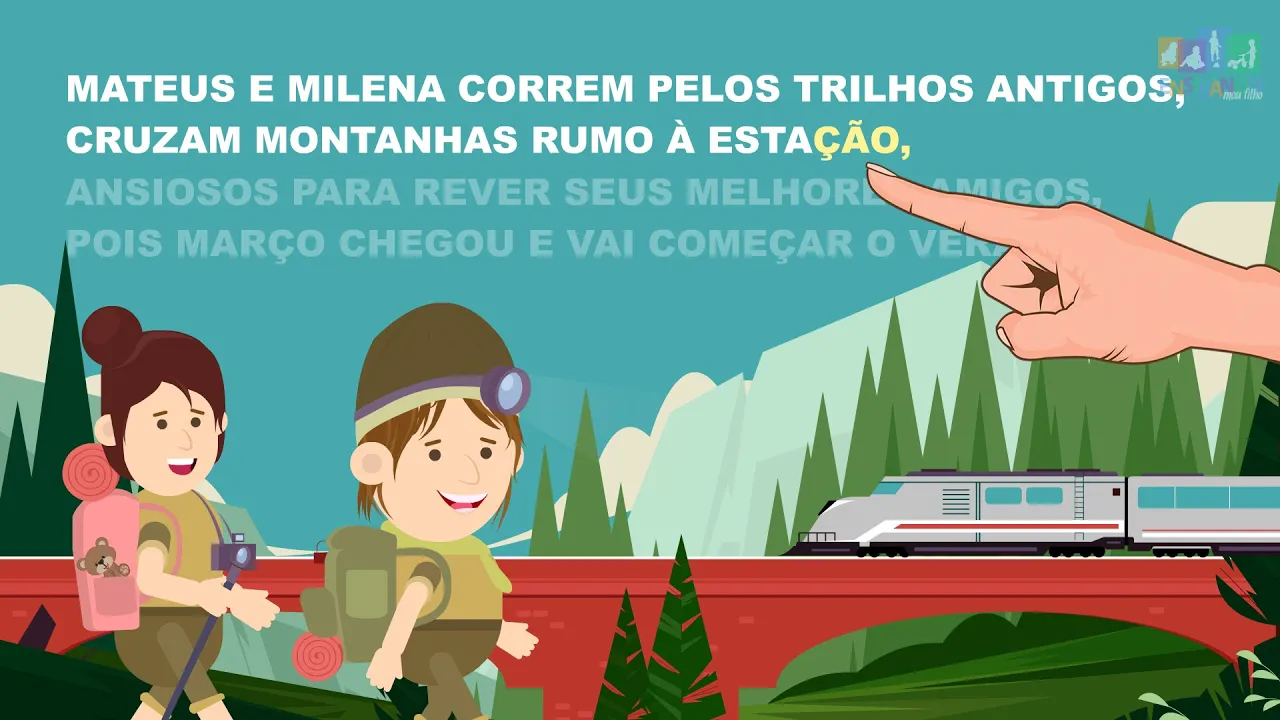 [Música] Mateus e Milena correm pelos trilhos an [Música] cruzam Montanas rumo a estação ansiosos para R seus melhores amigos pois [Música] Março chou e vai começar o verão [Música] Mateus e Milena correm pelos trilhos antigos cruzam montanhas rumo a estação [Música] para rever seus melhores amigos pois Março chegou e vai começar o verão n