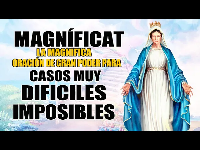 hoy Les traigo Esta poderosísima oración la magnífica la oración que el santo espíritu de Dios le regaló a María santísima Esta oración es muy efectiva y poderosísima fue dictada por el espíritu santo a la santísima Virgen María cuando llevando en su seno virginal al niño Jesús la Encarnación del verbo divino fue a visitar a su prima Santa Isabel embarazada de San Juan Bautista en las montañas de judea glorifica mi alma al Señor y mi espíritu se llena de gozo al contemplar la bondad de Dios mi salvador porque ha puesto la mirada en este humilde siervo