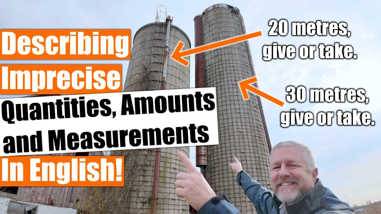 You'll notice I'm using the English phrase give or take because I'm giving you an imprecise measurement of the height of the silo. In English, when we are imprecise, when we are talking about numbers or temperature or things we can measure, we sometimes use phrases so people know we are saying approximately. This silo might be a little taller or a little shorter than that, but I think it's 20 meters, give or take.