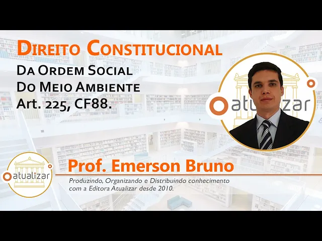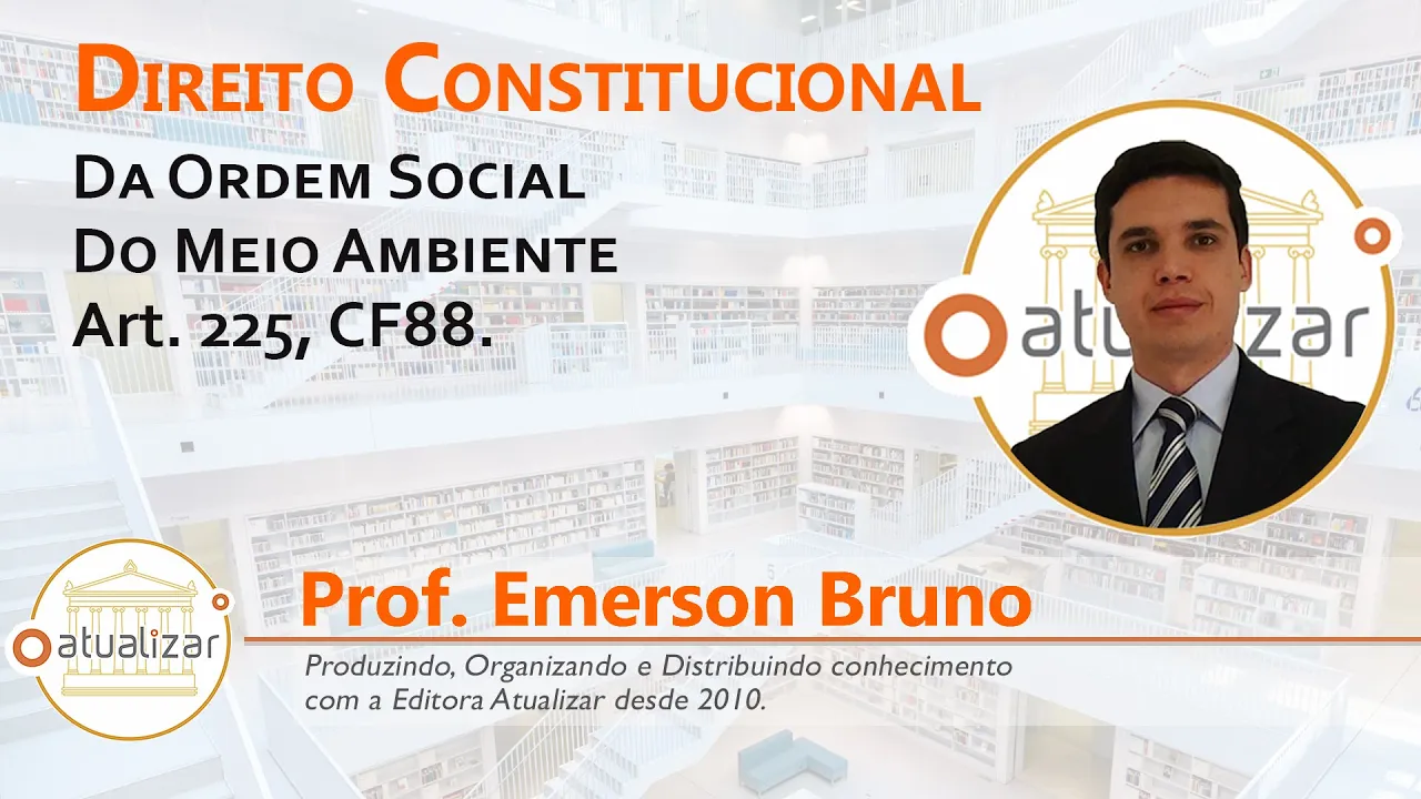 [Música] o alunos e alunas do youtube professor emerson bruno de volta com todos vocês e para mais uma aula de direito constitucional vamos tratar do tema meio ambiente isso mesmo artigo 225 da constituição extremamente importante um dos capítulos da ordem social que o título 8º da constituição da república federativa do brasil e o que a gente encontra logo de cara no artigo 225 vejam só todos têm direito ao meio ambiente ecologicamente equilibrado bem de uso comum do povo e essencial à sadia qualidade de vida impondo se ao poder público e à coletividade o dever de