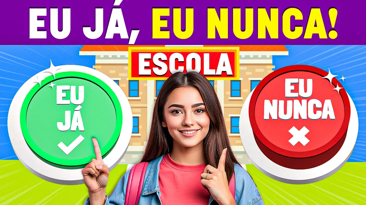 ataque de risos durante a aula já passou bilhetinhos secretos durante a aula já esqueceu de levar um trabalho [Música] importante eu já ou eu nunca já levou bronca por tirar nota [Música] baixa já participou de uma peça de teatro na escola [Música] já fez uma prova sem estudar [Música] nada já usou a desculpa de Meu cachorro comeu minha lição de casa [Música] já brincou de pique esconde no [Música] Recreio já inventou uma desculpa para sair da aula mais [Música] cedo já sentiu saudades de um professor já cantou ou dançou na frente da [Música] turma já