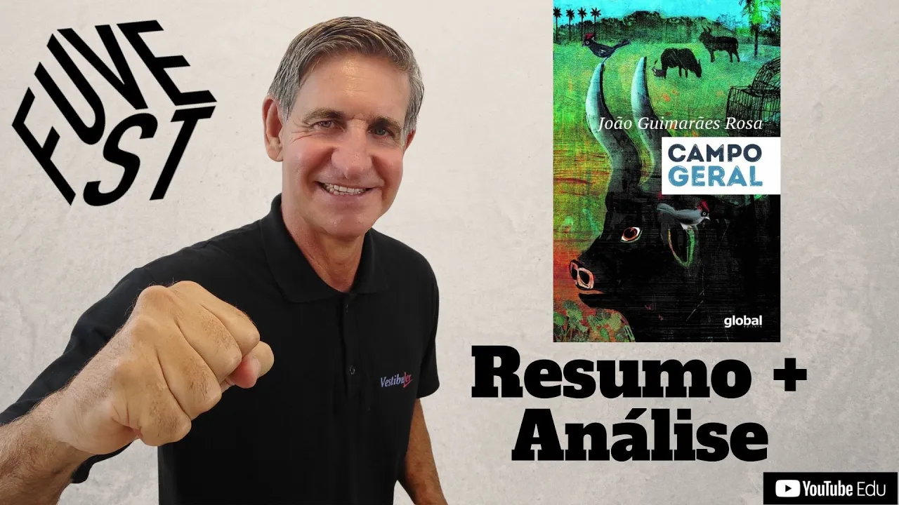 se você conhece a história do mineirinho já leu o livro Campo geral leitura obrigatória do vestibular da Fuvest sabe que características dessa obra têm maior probabilidade de serem cobradas então fica comigo que eu vou te falar que tudo o que você precisa saber sobre essa obra e assim gravar e dar as questões da prova e e fala galerinha guerreira tudo certo eu sou professor não teria essa é a série com os resumos das obras de leitura obrigatória dos vestibulares o vídeo de hoje nós vamos resumir e analisar este livro aqui ó Campo Geral do Guimarães