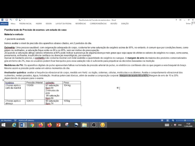 o olá nós vamos agora mostrar a planilha de teste de precisão do nosso estudo de caso de como que é o funcionamento do analisador quântico relacionados com outros aparelhos que dão indícios de como está a saúde da pessoa muitas pessoas pergunta assim ah mas analisador quântico ele dá alterações em alguns relatórios dependendo de horários que você faz o relatório no dia ou até diminutos mas isso acontece em vários tipos de aparelho no entanto que nesse estudo de caso nós vamos mostrar um paciente avaliado tá e ele vai ser avaliado né os níveis de precisão de