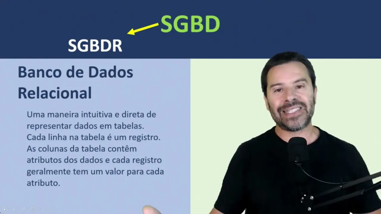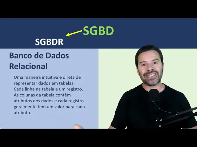 chama de sgbdr que é o sistema gerenciador de banco de dados relacional esse rzinho que aparece ali no fim significa relacional porque existem também os sistemas gerenciadores de bancos de dados não relacionais que são os nosql mas por enquanto se até a isso sgbd entre alguns tipos tem o sgbdr que é o sistema gerenciador de bancos de dados relacional e o que que é um banco de dados relacional é uma maneira muito intuitiva e direta de representar dados em tabelas nos bancos de dados relacionais cada linha na tabela é considerada um determinado registro dessa tabela