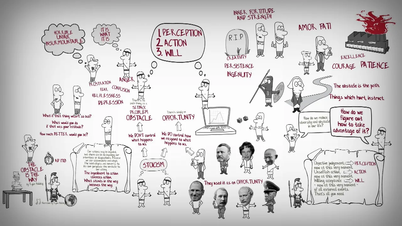 what he wrote It's a pretty simple quote but basically he said our actions may be impeded but there can be no impeding our intentions or dispositions because we can accommodate and adapt the Mind adapts and converts to its own purposes the obstacle to our acting and then Marcus he concluded with these words that are I think a maximum for anyone he said the impediment to action advances action what stands in the way becomes the way and so this concept is critical to a philosophy known as stoicism it's part of an exercise in that philosophy known