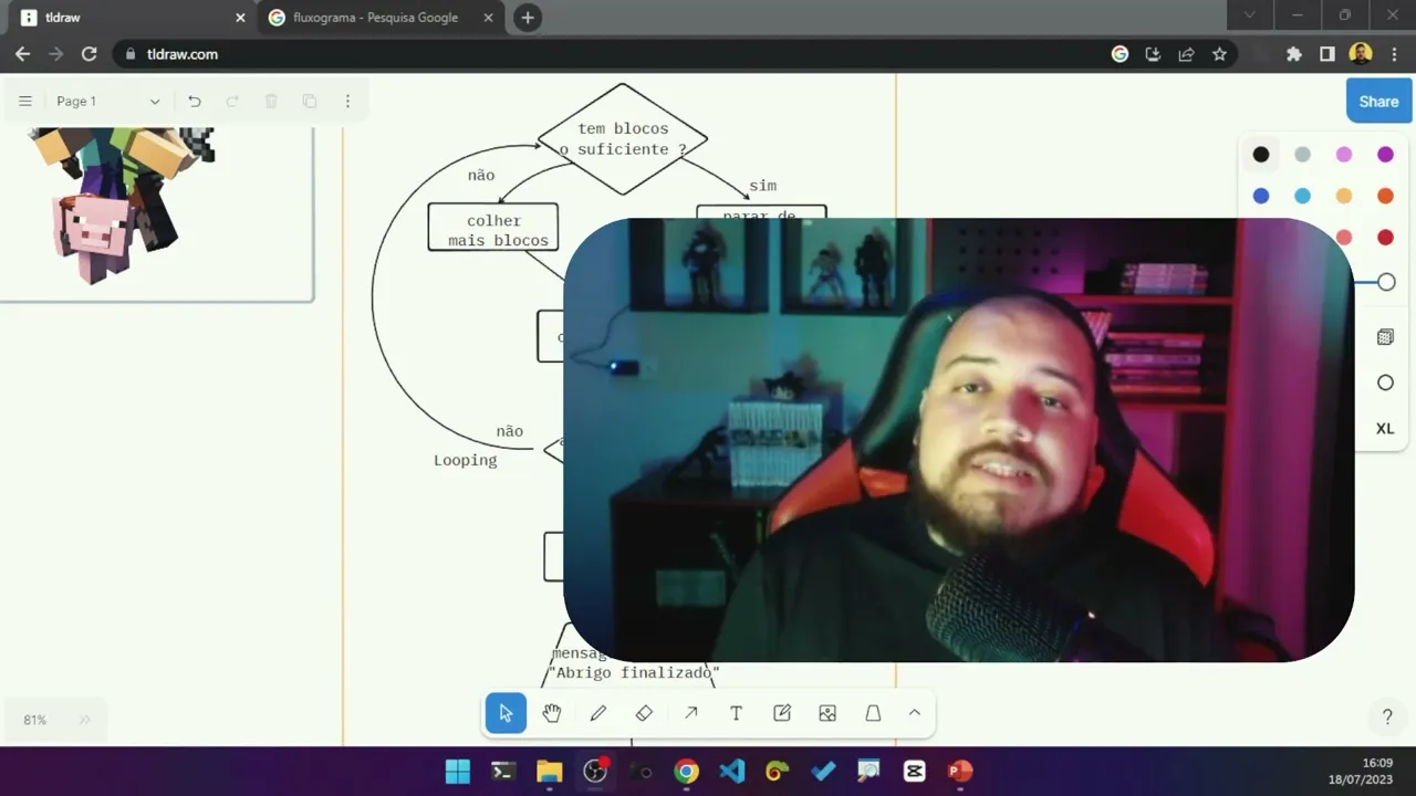 essa viagem então desenho fluxogramas Pode parecer bobo mas tem muita gente que às vezes até começou por linguagem de programação e aí o que que acaba fazendo várias vezes se sente travado na hora sabe quando alguém fala para você poxa eu não entendi desenha ou então quando alguém fala você não entendeu quero que o desenho literalmente se você não tá entendendo o que você precisa fazer não tenha vergonha desenho dessa maneira você vai ver como vai ficar muito mais claro e se você nunca mexeu com nenhum código fazer esse tipo de coisa quando você tiver