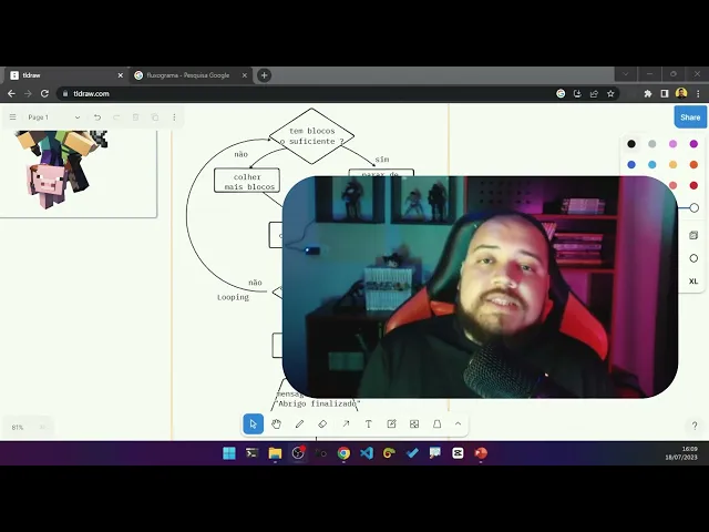 preciso desenhar necessariamente um fluxo No começo eu recomendo porque é um excelente exercício de lógica uma excelente maneira de treinar lógica e sim Treinar esse tipo de coisa vai te ajudar na hora que você tiver codificando porque vai chegar um momento que você literalmente não vai desenhar mais isso tá é muito mais no começo para você conseguir enxergar falar Ah então esse eu passo a passo que eu tenho que fazer porque vai chegar um momento que você vai acabar meio que na hora que você pensar no problema automaticamente você vai estruturar isso dessa maneira na