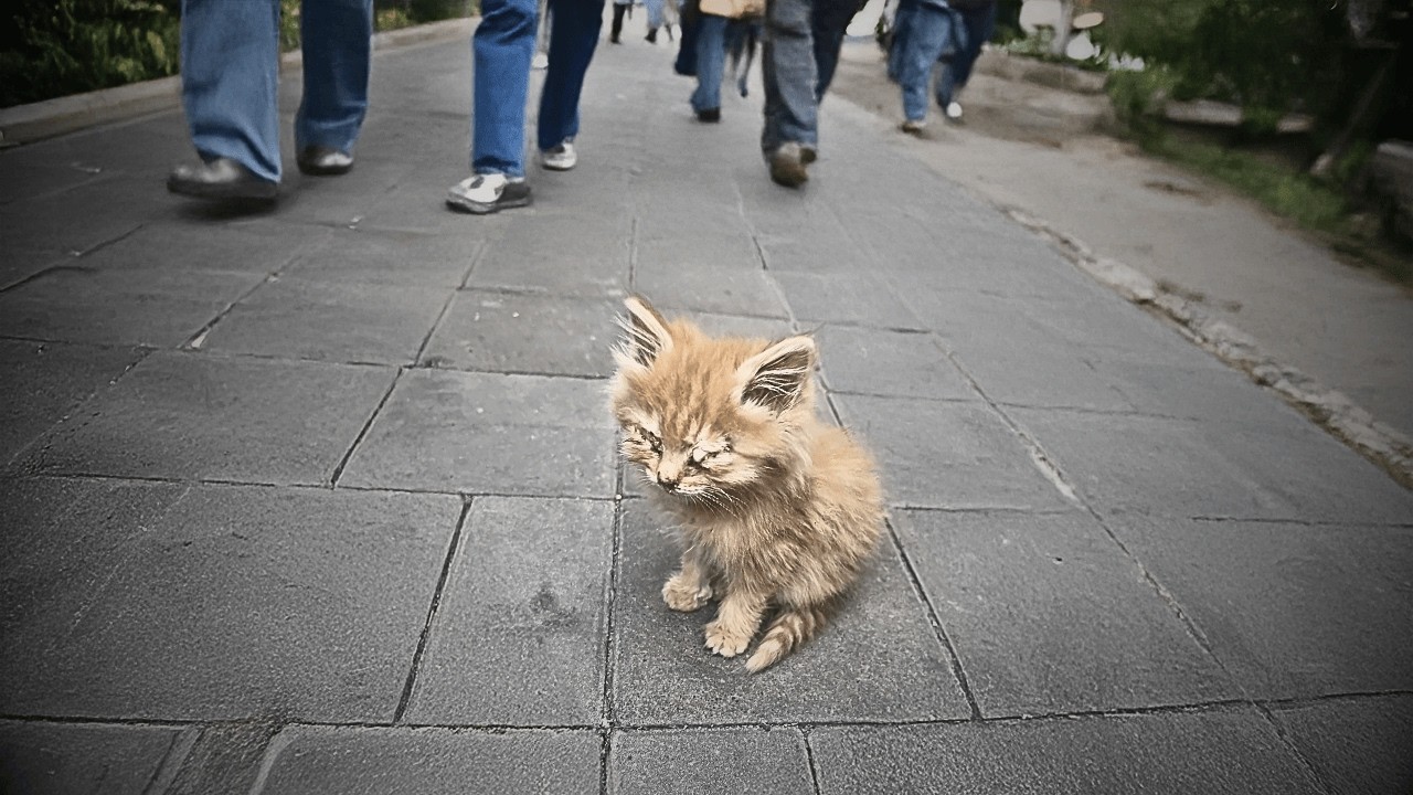 I saw a little kitten sitting by the roadside, looking dazed, as if he were sick. He looked so pitiful. People were walking by, but no one stopped for him.