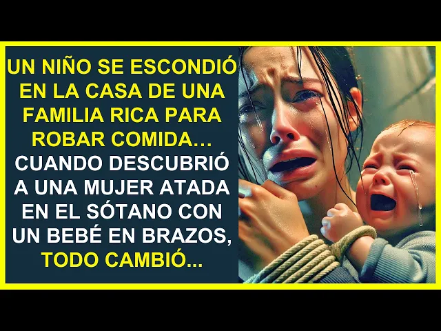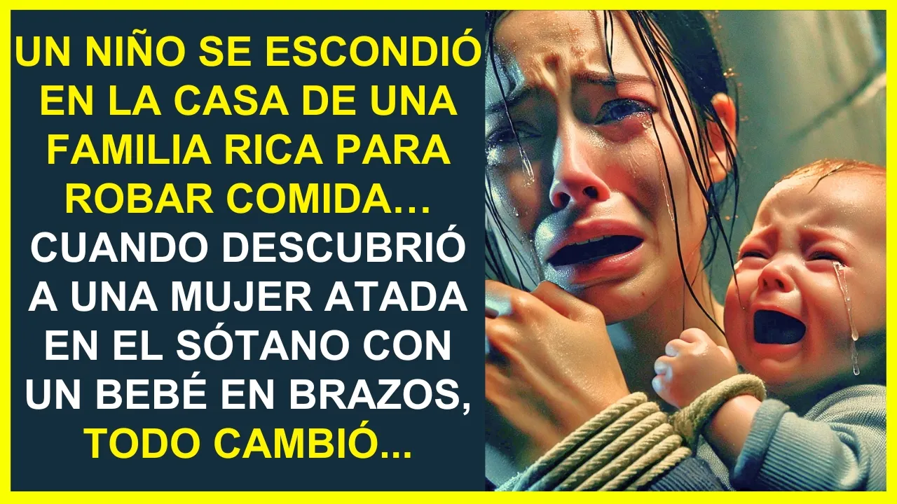 Un niño se escondió en la casa de una familia rica para robar comida cuando descubrió a una mujer atada en el sótano con un bebé en brazos Todo cambió el aire frío de la madrugada se colaba por las rendijas de la ciudad llenando cada rincón con un aliento helado y penetrante en un callejón oscuro detrás de la panadería olora a hogar Lucas se acurrucaba entre las cajas de cartón intentando encontrar un poco de calor la Humedad le calaba los huesos y su estómago rugía con el hambre que se había convertido en un compañero constante sus