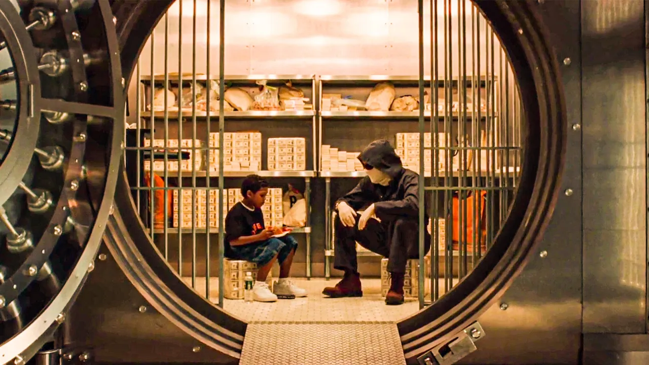 office and beats him savagely making an example out of him to the others dalton walks out of there splattered with blood so one man gives him his keys and a boy shows him his video game console which the robber tells him to keep next dalton reshuffles the hostages again making them line up by their gender and tells them all to strip to their underwear everyone except an older lady does it so his female associate takes her to another room while he instructs the rest of the hostages to put on the suits and the masks they