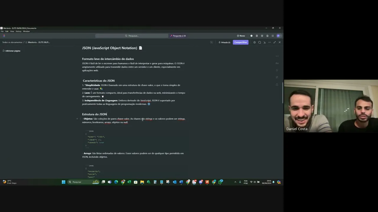 pessoal que que talvez não tenha essa familiaridade tá claro ficou alguma Dúvida e e outra coisa eh você não precisa saber você precisa saber mais ou menos como é que funciona o conceito Porque hoje a gente tem ferramenta de Inteligência Artificial se você tiver um jz mal formatado você pede pro chat PT organiza esse Jom resolva esse Jom que ele vai formatar bonitinho ali para você colocar em qualquer sistema Então hoje e tem o ponto também que qualquer aplicativo hoje tem a própria documentação então Muitas das coisas eu entro eu entro na própria documentação por
