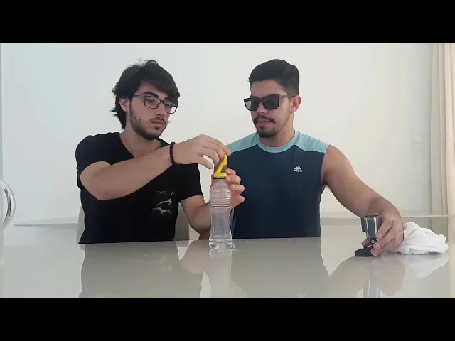 este experimento é sobre temperatura calor e pressão este vídeo tem como objetivo abordar os temas de calor e temperatura de forma prática e contemplar a disciplina de física dois a universidade católica do salvador orientado pelo professor fernando nunes este esclarecimento relativamente fácil de fazer apesar disso ele apresenta resultados bem interessantes pra fazer o experimento é bem fácil a gente precisa de alguns materiais como garrafas de água nós já água fria e também uma já com água quente além desses materiais a gente precisa também de um balão de festa dessa gente a primeira coisa que temos