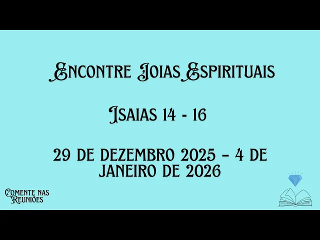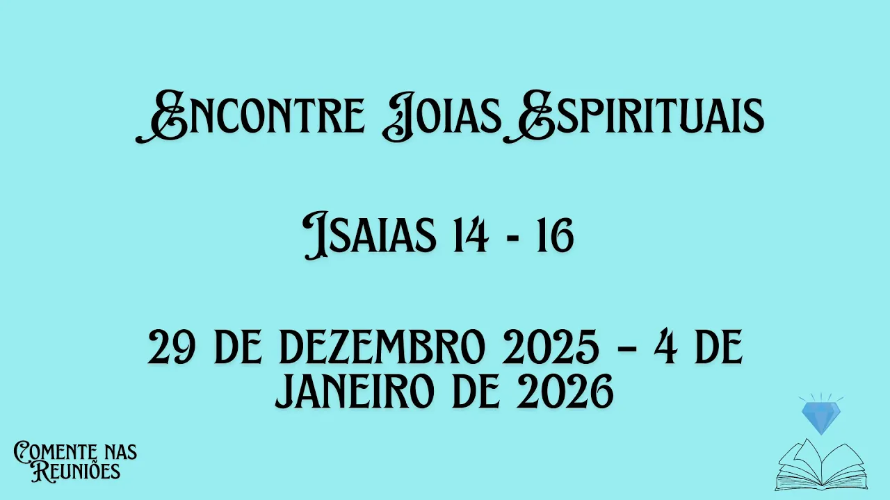 Olá, irmãos e irmãs. Bem-vindos ao canal Comente nas Reuniões. Hoje vamos compartilhar sugestões de resposta na sessão de Encontre joias espirituais da semana do dia 29 de dezembro de 2025 a 4 de janeiro de 2026.